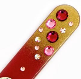 This nail file is embellished with red, gold and silver crystals.