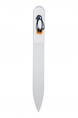 Pingu handpainted Glass Nail File in 90mm size. Double sided with pointed tip,