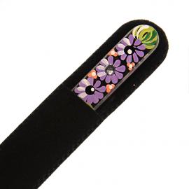 90mm handbag size handpainted nail file with three purple flowers and preciosa stone.