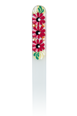 Three handpainted flowers on a clear 135mm crystal nail file.